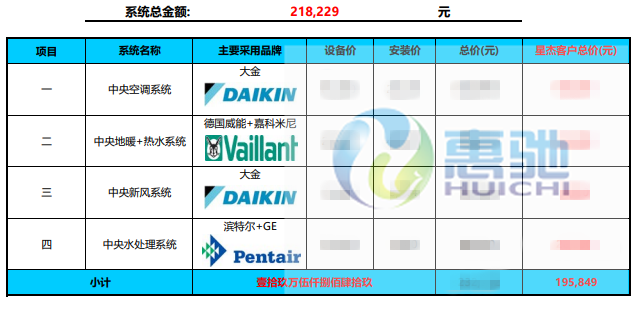 家居集成系統(tǒng): 大金VRVP系列中央空調(diào) 布朗中央新風(fēng)系統(tǒng) 德國(guó)威能中央水地暖 濱特爾中央凈水