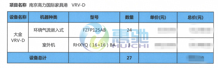 項目名稱:高力國際家具港-大金中央空調(diào)系統(tǒng)項目