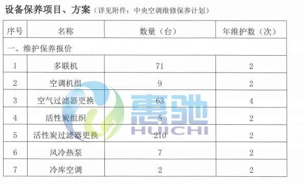 項(xiàng)目?jī)?nèi)容:對(duì)其空調(diào)設(shè)備進(jìn)行保養(yǎng),保證其設(shè)備滿足正常生產(chǎn)能力,降低故障率,提高生產(chǎn)效率達(dá)到穩(wěn)定的運(yùn)行速度。