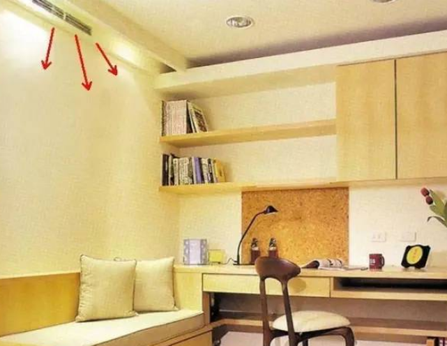 書房是安靜讀書學(xué)習(xí)的地方,空調(diào)安裝在正面直接吹在桌子上容易造成書或紙張被吹亂,而且迎面的熱風(fēng)也容易造成人頭暈等過熱的感覺。