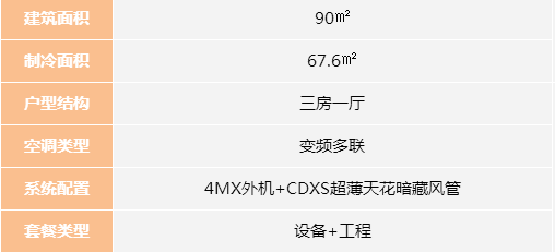90㎡三房一廳4MX大金中央空調價格表